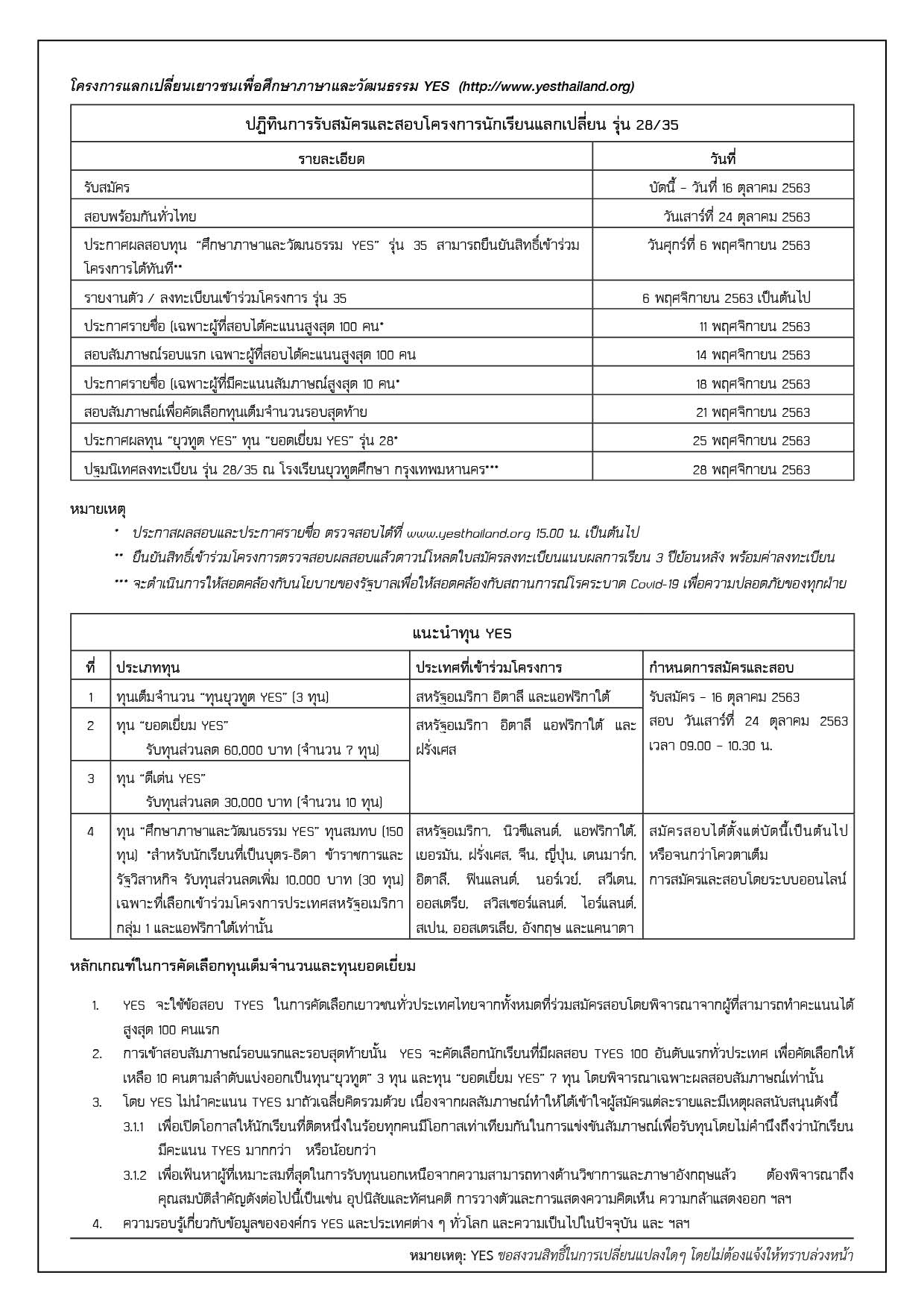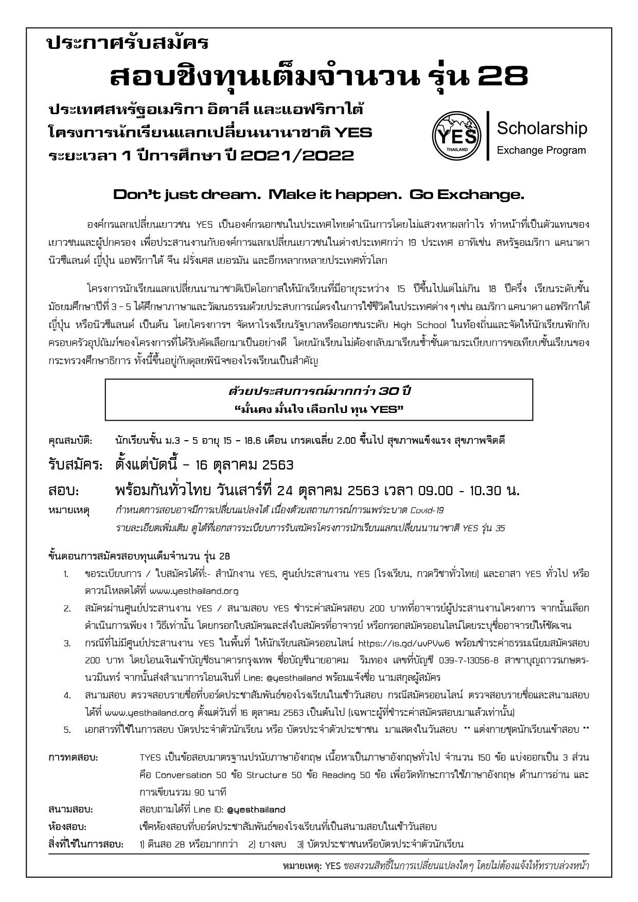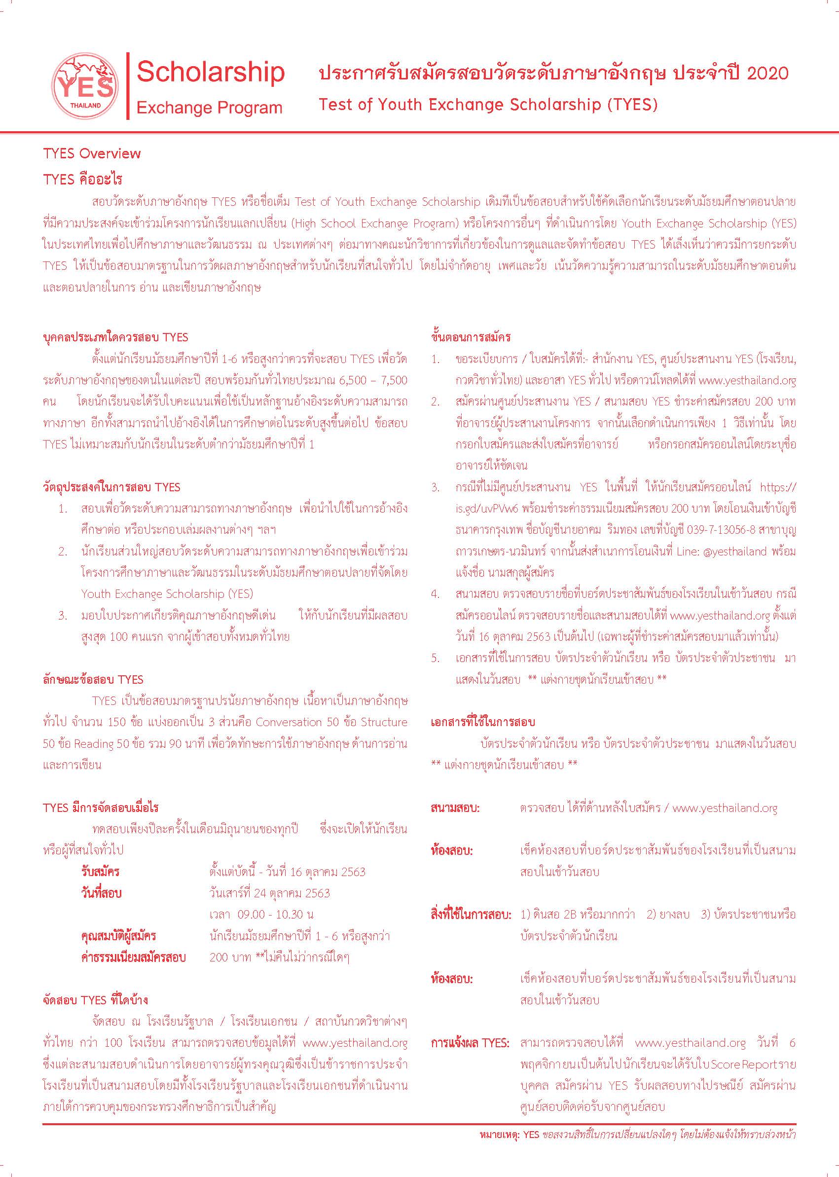 สอบชิงทุนฟรี “ยุวทูต YES”